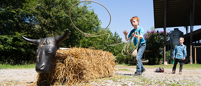 Rodeo Riders are assigned to a horse based on an assessment of their riding ability, and ALL riding levels are welcome. Campers in this program learn the rodeo barrel pattern and spend time learning other rodeo riding skills! Rodeo Riders also spend a portion of their day participating in traditional camp activities.